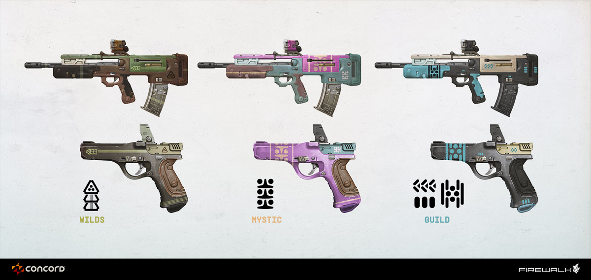 Selected visual design work for Concord, a AAA multiplayer first-person shooter game with a unique sci-fi aesthetic, developed by Firewalk Studios as part of Sony Interactive Entertainment. The visuals shown here represent a small portion of the total work produced during the game's multi-year development phase.