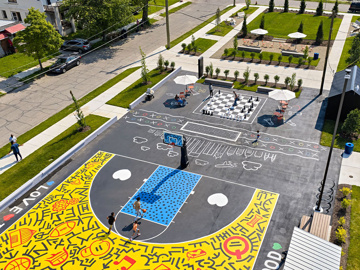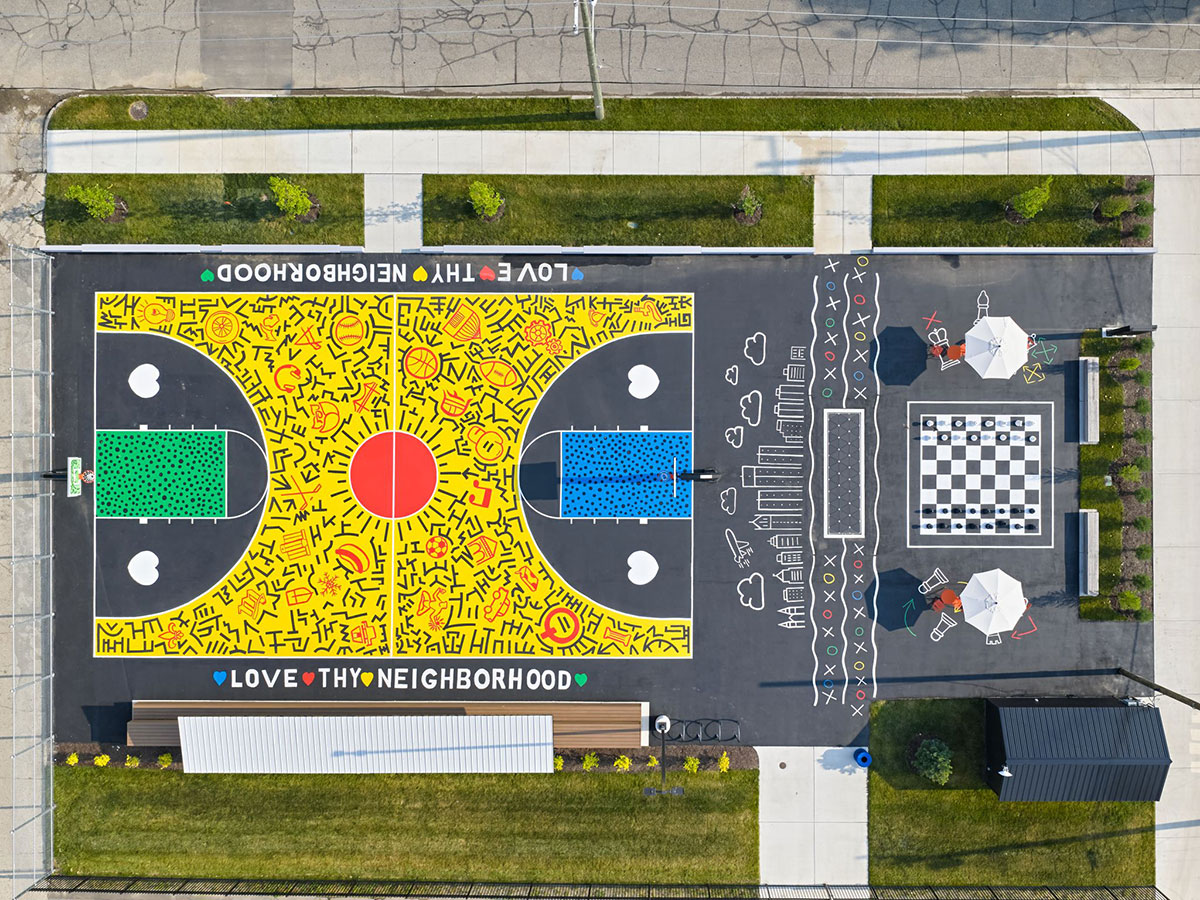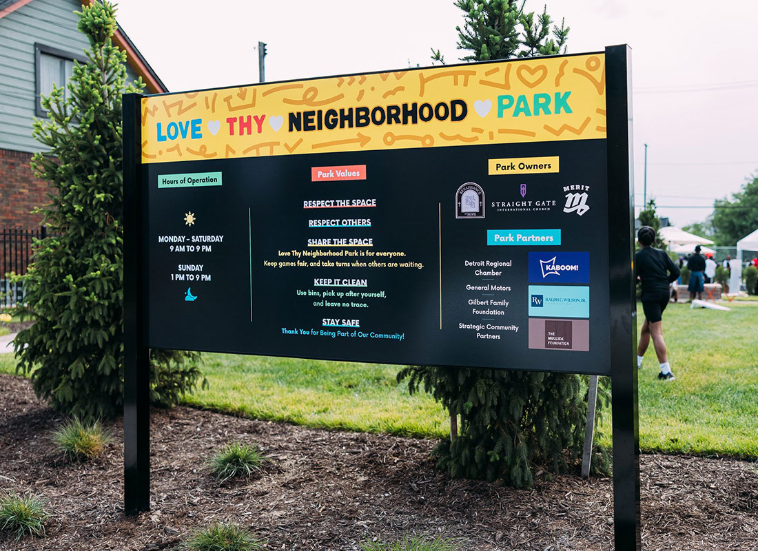 Art direction, branding, and experiential design for a public park and community flex space located in the Grand River/Livernois area of Detroit. This versatile space was created by transforming a formerly underutilized parking area and adjacent vacant lots. The art style for this project was heavily inspired by the work of artist Keith Haring and other examples of graffiti, street, and pop art.